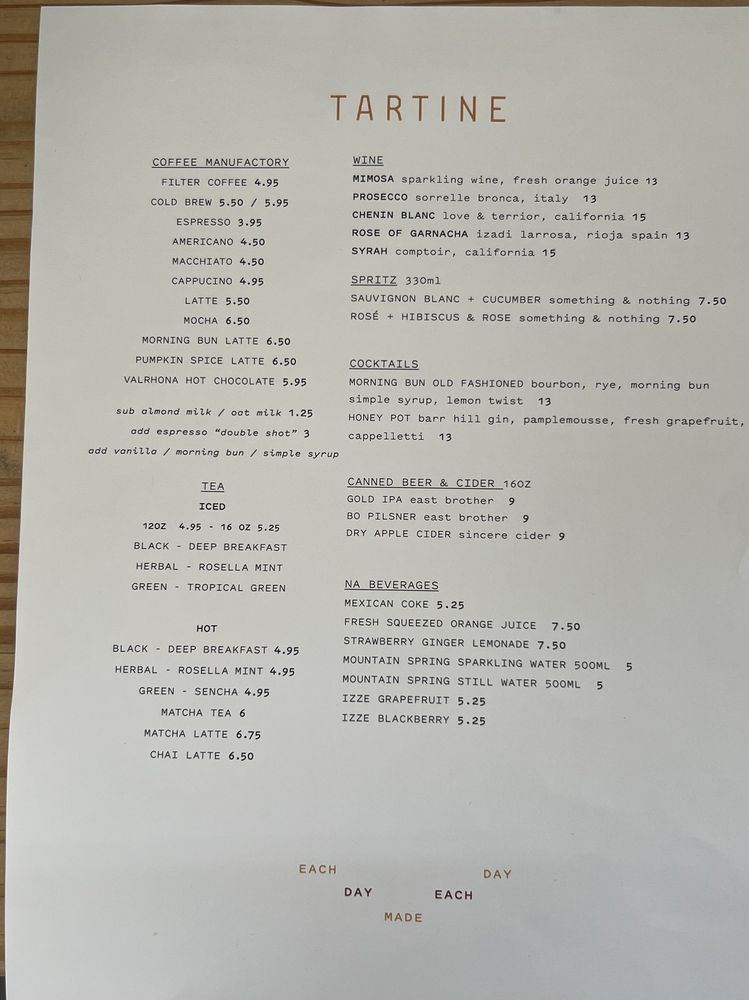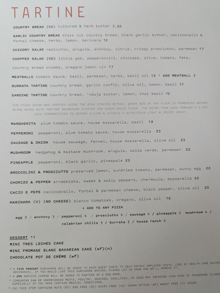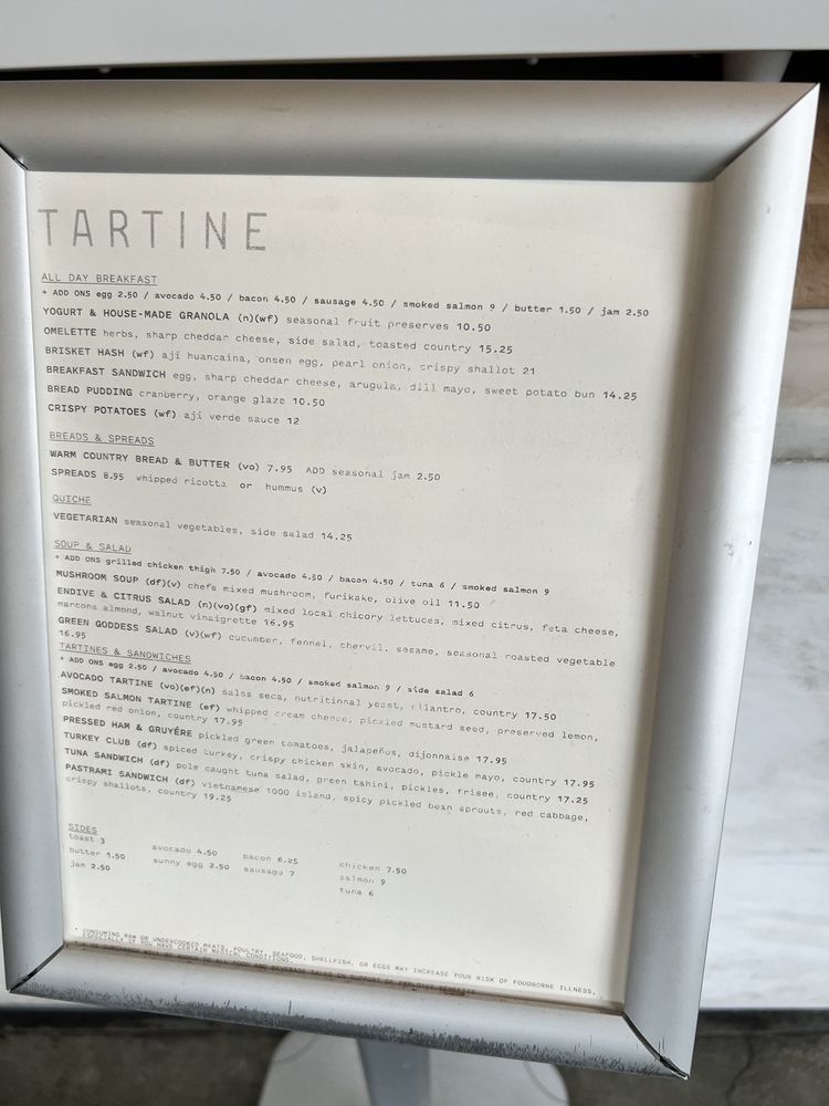 Tartine Manufactory Menu